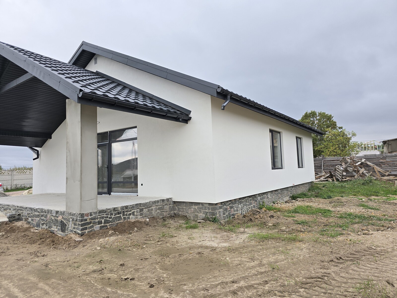 Продаж одноповерхового будинку незавершенного будівництва в с.Тетерівка. Ділянка 10 соток приватизованої землі. Загальна площа 120м.кв., 3 окремих кімнати,2 санвузла, кухня-вітальня 45м.кв., тераса, тепла підлога, світло 15кВт.,криниця, септик.