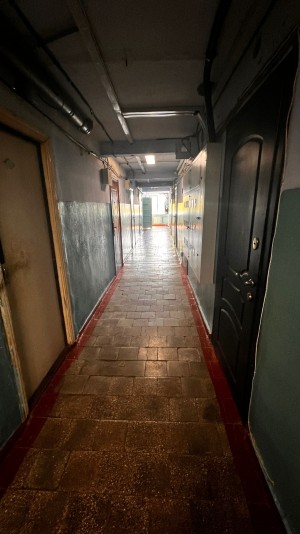Розташована на 4-му поверсі 5-ти поверхового будинку з червоної цегли, не кутова.