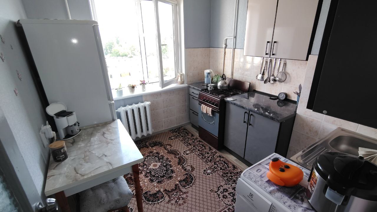 Характеристики за техпаспортом: Загальна площа – 31,8 м² Житлова – 15,6 м² Кухня – 6,4 м² Поверх: 5 з 9 Стан та оснащення: Хороший житловий стан Металопластикові вікна Чавунні батареї Поруч магазини, зупинка.
