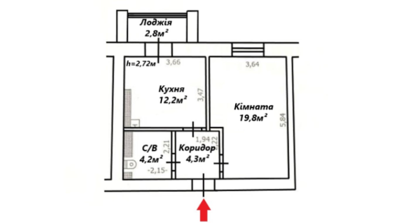 Загальна площа: 43.3 кв.м
