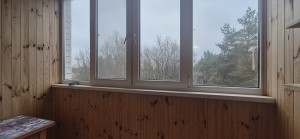 Лоджия засклена та обшита дерев’яною вагонкою. Вид на ліс. Дуже тихе місце.