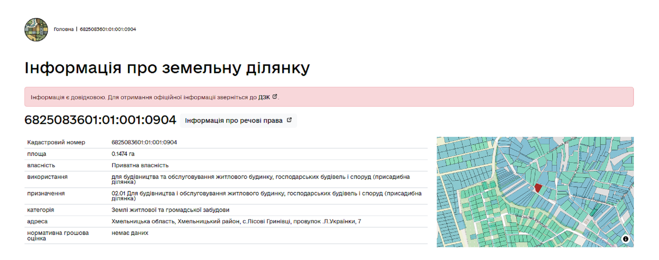 Кадастровий номер: 6825083601:01:001:0904