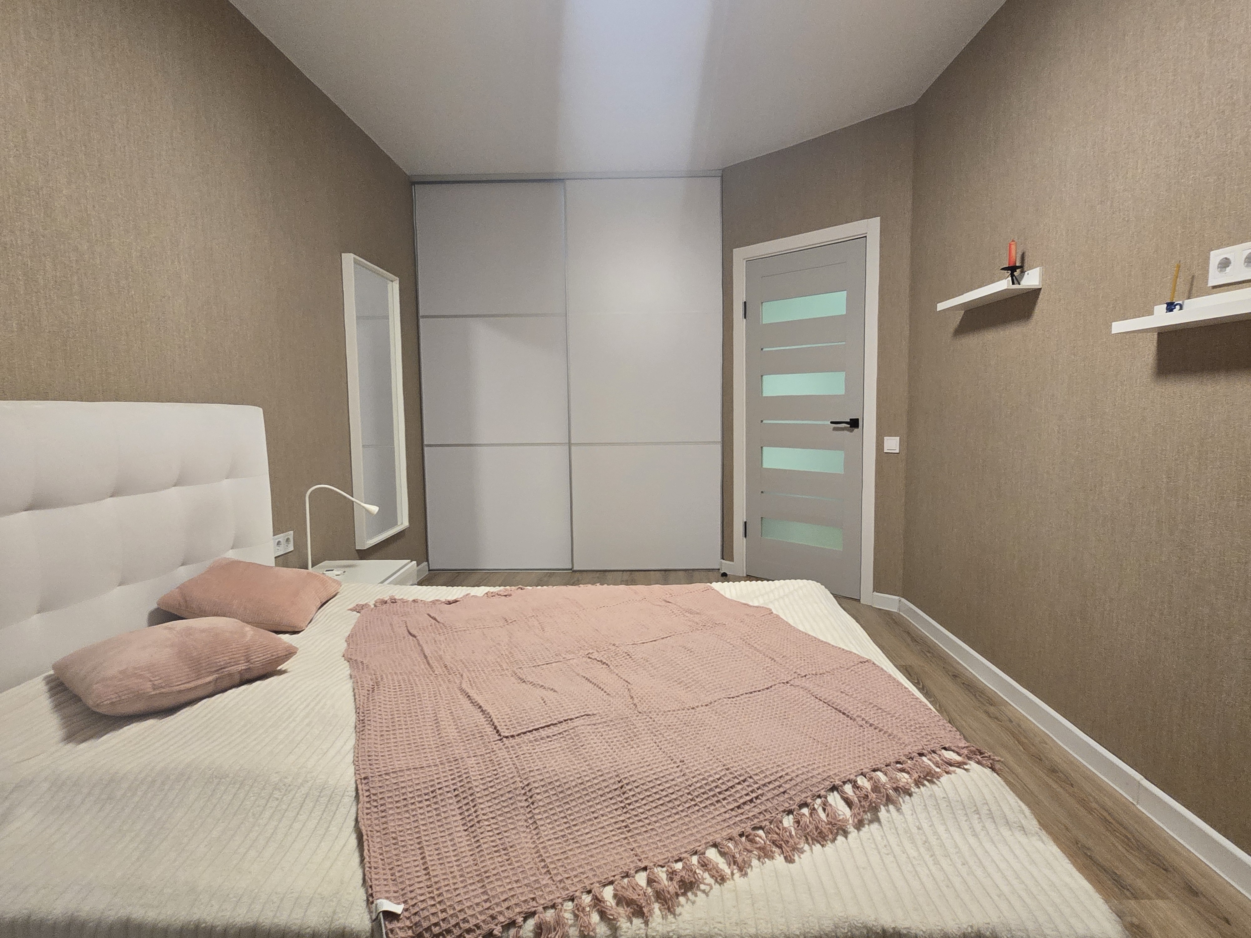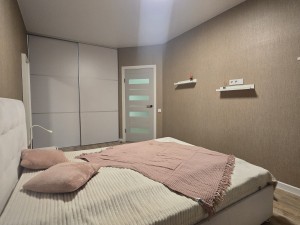 Простір грамотний на 3 повноцінні зони: Кухня з нормальною робочою зоною; Зона столової - лоджії; Повноцінна спальна кімната з двоспальним ліжком; Гардеробна кімната ну дуже простора;
