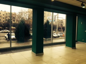 Фасадний вхід та великі панорамні вітрини,