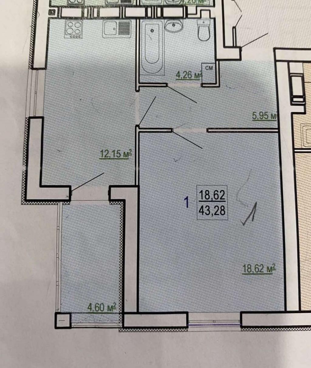 Загальна площа: 43 кв.м