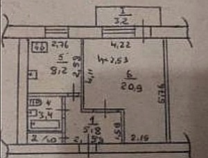 1 кімн., площа 26/16/6, поверх 2/2