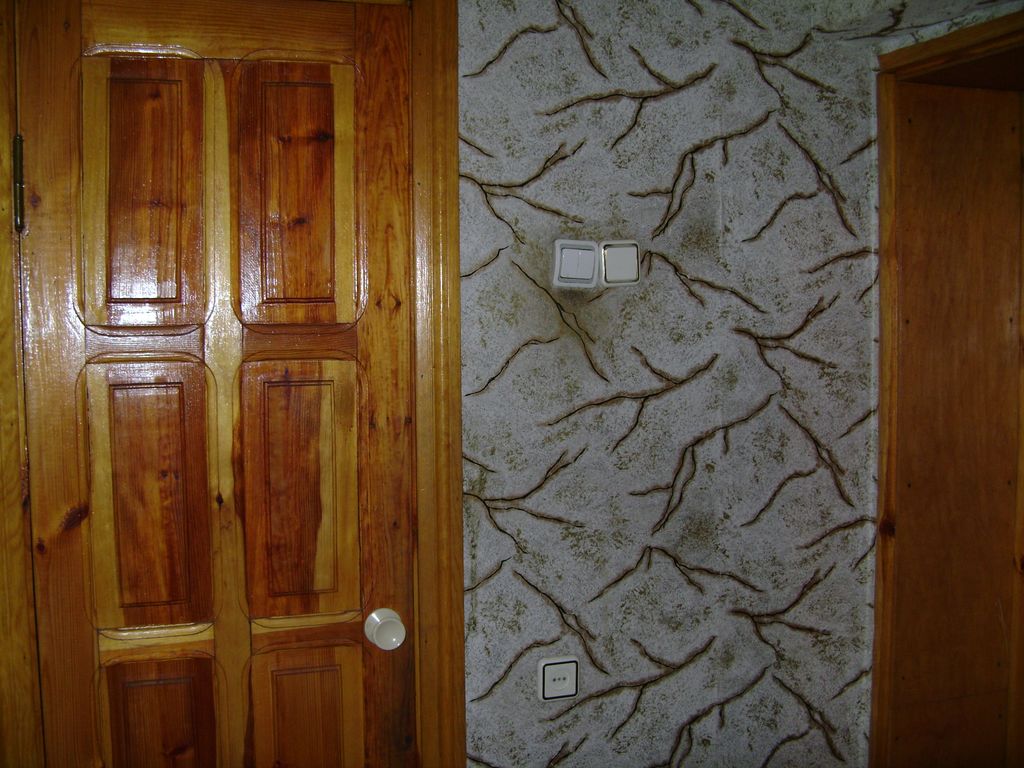 дерево.; на стінах шпалери; на підлозі лінолеум; великий сануз.совм., у квартирі є інтернет; на вході код. поряд супермаркет., ринок, дитсадок, школа, зав.відпочинку, стоянка для авто.